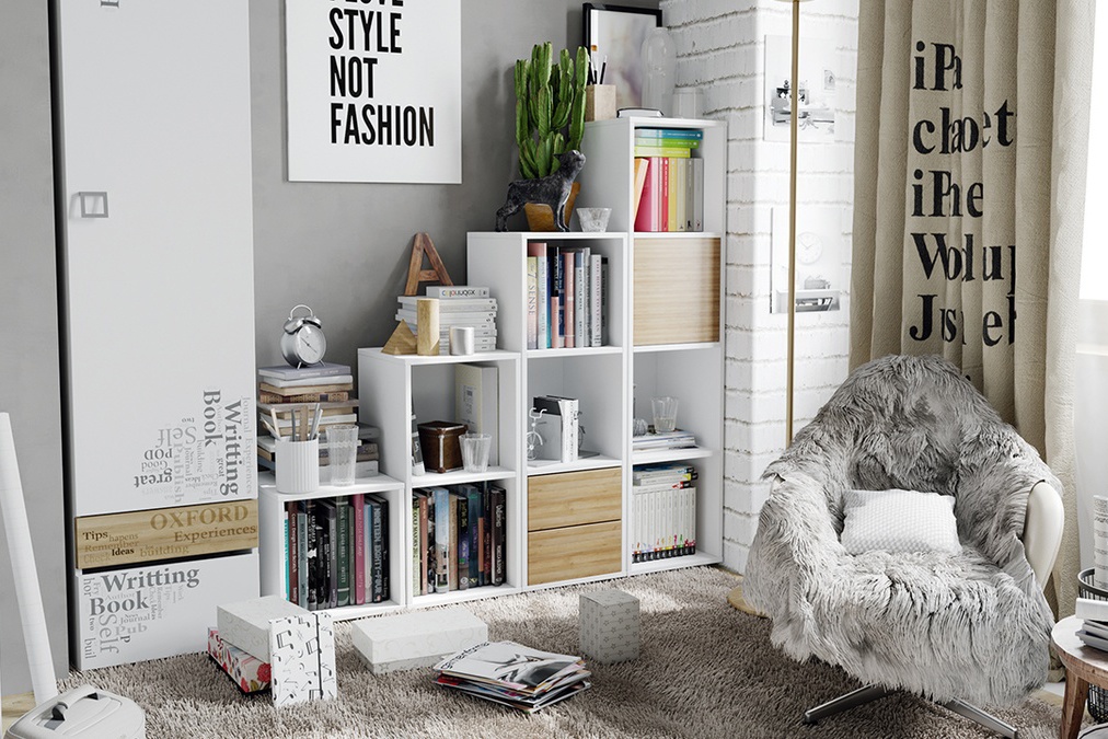 Готовый набор стеллажей «ЛИТЛ» (белый/дуб ривьера)