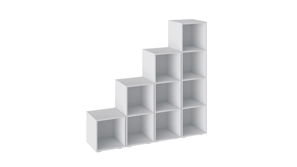 Четыре открытые полки. Три ящика.