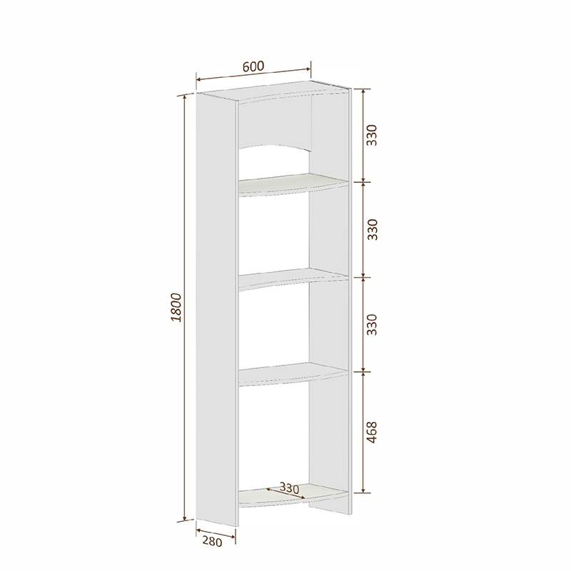 код 125392Стеллаж из ЛДСП с ламинацией под цвет серого дерева. Закругленные полки.