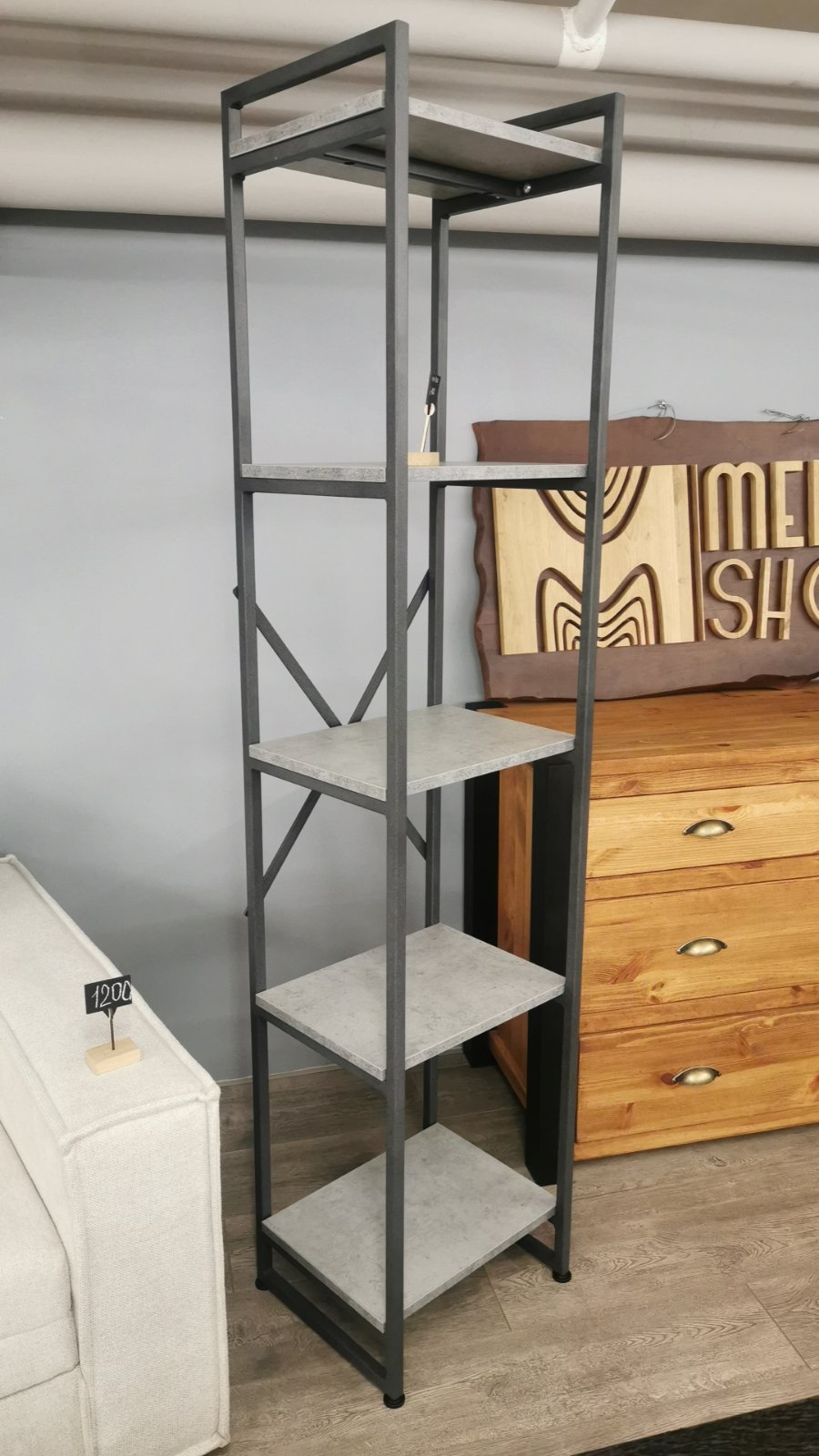 Стеллаж из ЛДСП с ламинацией под цвет серого дерева. Закругленные полки.
