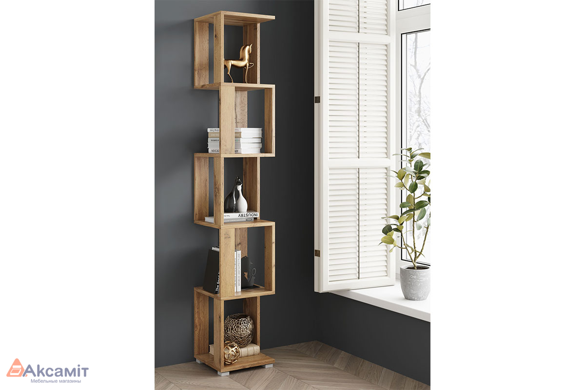 Стеллаж Штерн станет эффектным дополнением системы хранения в любом интерьере. Оригинальная конструкция не занимает много места, при этом позволяет красиво расставить книги, декор, комнатные цветы или детские игрушки. Открытые полки не загромождают пространство, поэтому модель отлично смотрится как в просторной, так и в небольшой по площади комнате.