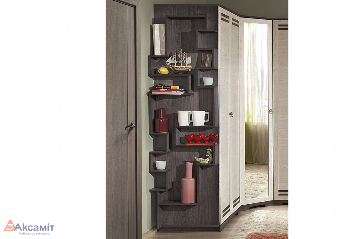 Недорогое функциональное решение для украшения дома. Поставьте на многочисленные полочки стеллажа TWIST любимые вещицы, фотографии, аромасвечи, и пустое место на стене преобразится. Стеллаж может быть закреплен на стене вертикально и горизонтально, например, над кроватью. Так же из одного комплекта деталей можно собрать и установить стеллаж узкой боковины шкафа на 400 мм и широкой - на 560 мм. Стеллаж TWIST выпускается во всех декорах коллекций.