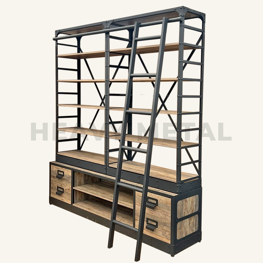 Стеллаж в стиле лофт “Брутто” – это не только функциональное решение для хранения книг, но и стильный элемент декора для вашей гостиной. Он выполнен в брутальном и дерзком дизайне, который подчеркнет ваш неповторимый стиль. Стеллаж оборудован лестницей для удобного доступа к верхним полкам, а также нижней тумбой с выдвижными ящиками, что делает его еще более практичным и удобным в использовании. Каркас, полностью изготовленный из металла, является прочным и долговечным решением и прослужит вам немыслимо длительный срок. Не упустите возможность добавить в свою гостиную этот шикарный и функциональный стеллаж в стиле Лофт!