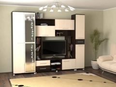 Трендовая модульная гостиная без лицевой фурнитуры. Материал: МДФ покрытый плёнкой, ЛДСП.