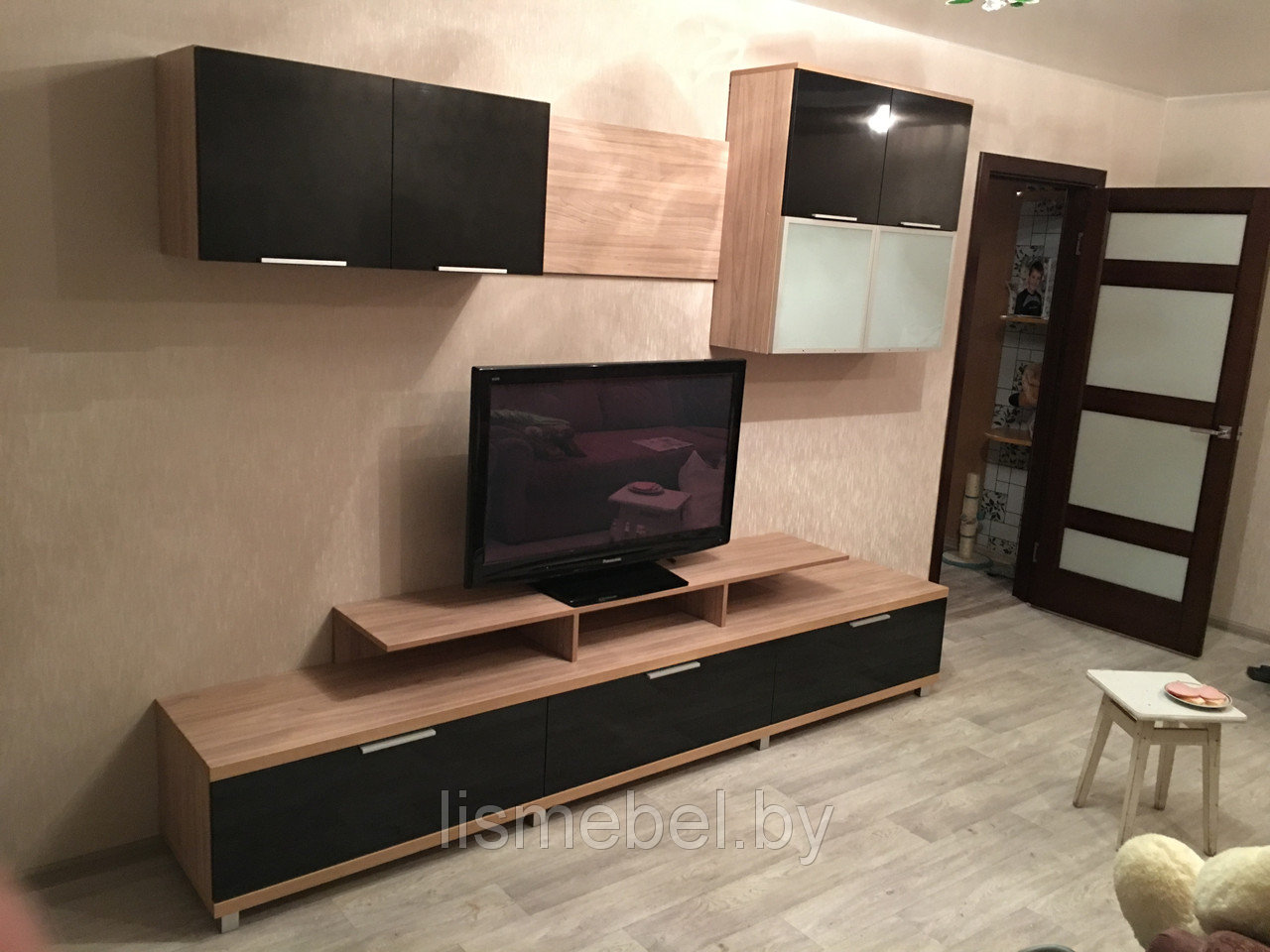 Гостиная изготавливается из ЛДСП толщиной 18 (36) мм (возможны любые декоры цветов).