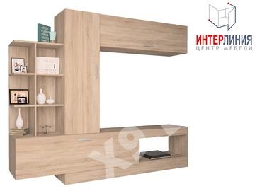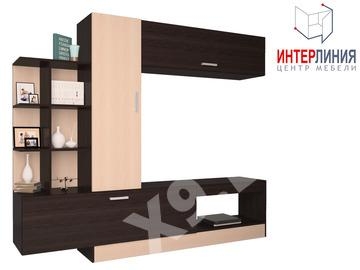 код 88449Стильная горка в нескольких вариантах расцветки с небольшим стеллажом в торце и навесным модулем с подъемной дверцей.