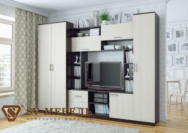 Стенка для гостиной бежевая «Альт-5»