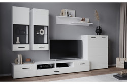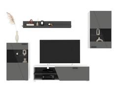 Коллекция модульной мебели с белыми глянцевыми фасадами для гостиной. Материал: МДФ, ЛДСП.