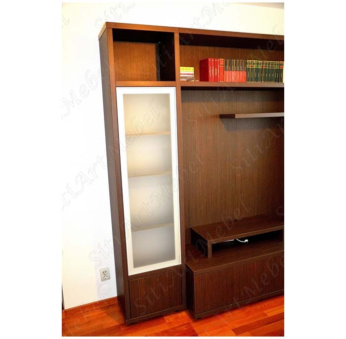 Представленная на фото горка, отлично подойдет как для гостиной, так и для спальни. В составе модели есть открытые полки для книг или декора, ниша для ТВ и распашные шкафчики, створки которых украшены полупрозрачными вставками. За счет качественных материалов и современной фурнитуры горка даже при постоянной эксплуатации не утратит своей красоты и функциональности.