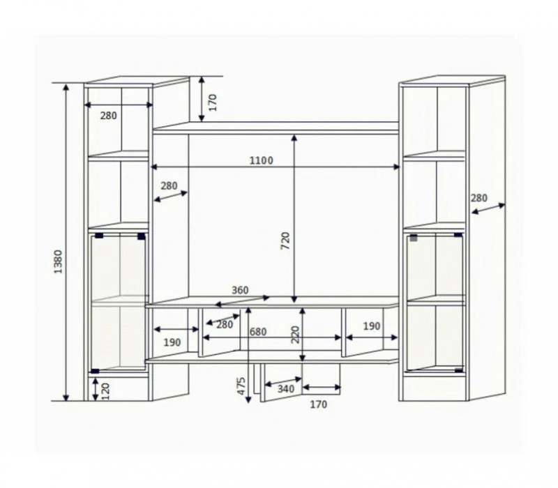 Гостиная Торонто - оригинальный дизайн, вместительность и небольшие габариты. Размеры: 2331х353х1850 мм.