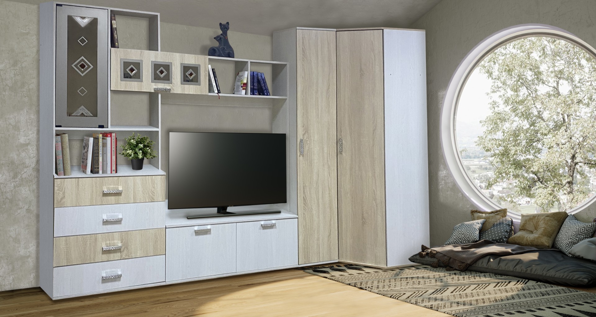Гостиная «Афина» Комплект 1 - Анкор/Сонома (Рикко)