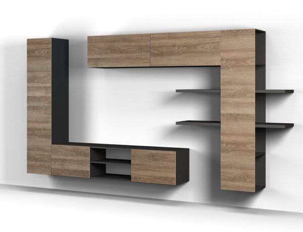 код 131063Набор для гостиной с навесными модулями. Цвет: Черный / Ясень орландо.