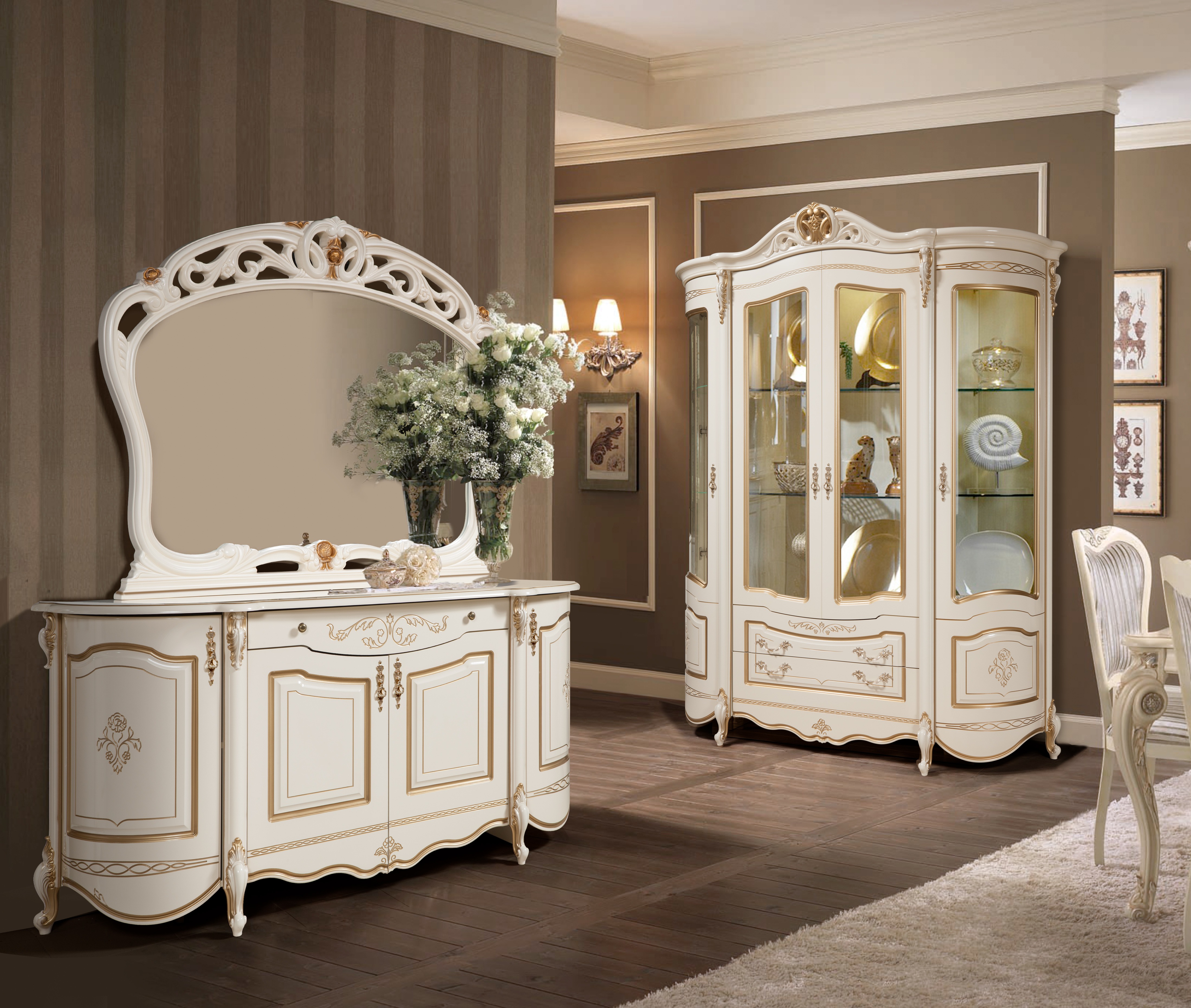 код 138505В наборе шкаф и комод с зеркалом.
