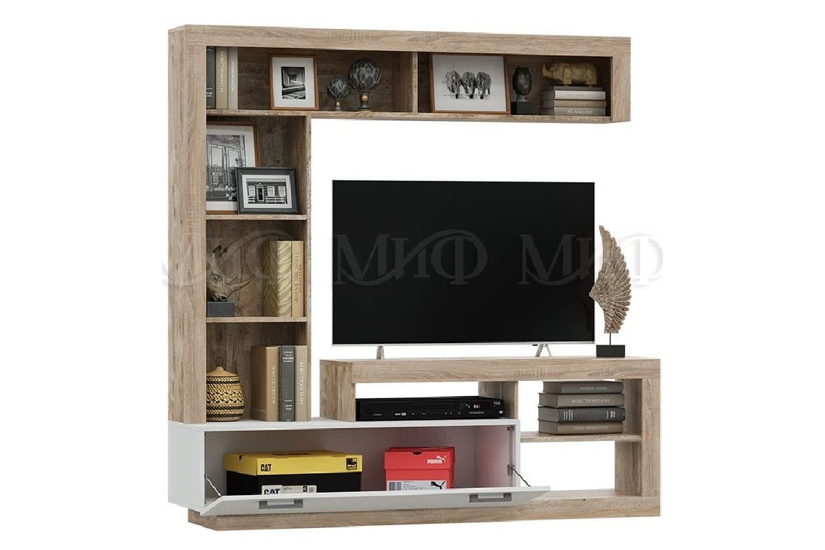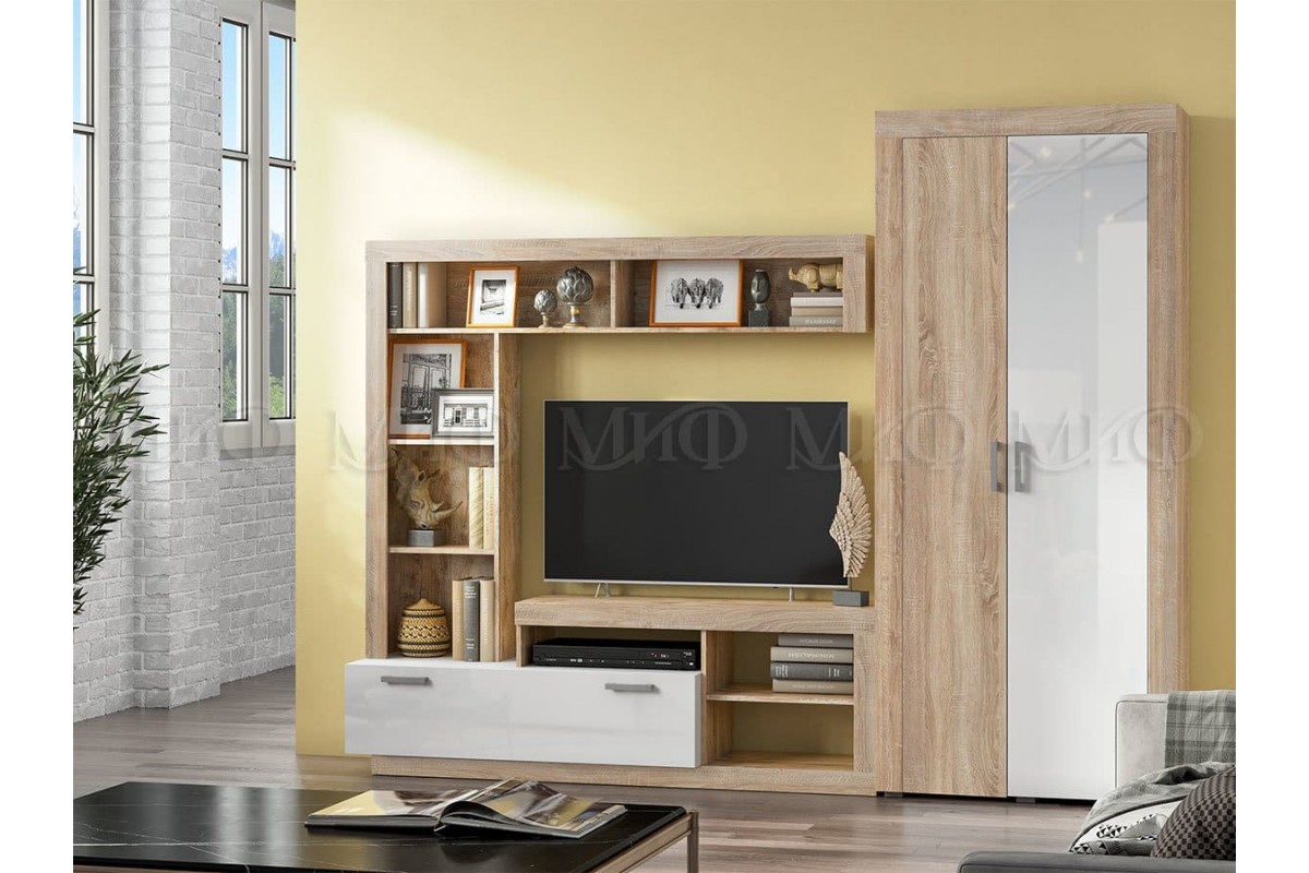 Гостиная «Ангара» со шкафом (дуб сонома - белый глянец)