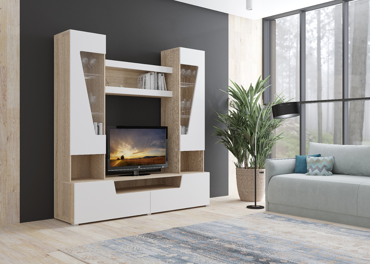 Гостиная «Лия-2» Сонома /Белый глянец Рикко