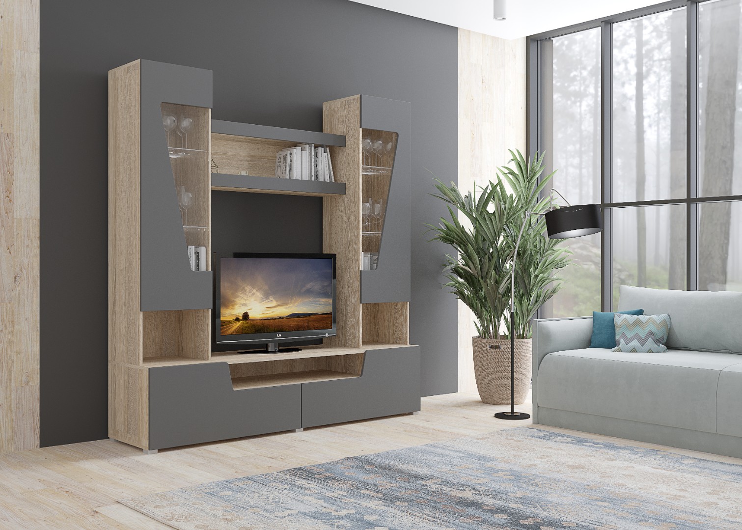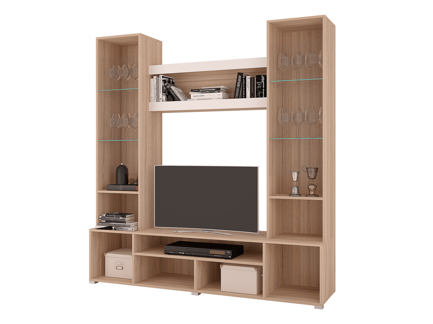 Гостиная «Лия-2» Сонома/Белый глянец Рикко