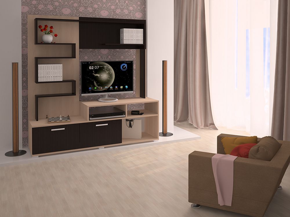 код 112983Стенка состоит из функциональных модулей и позволит разместить всё необходимое.
