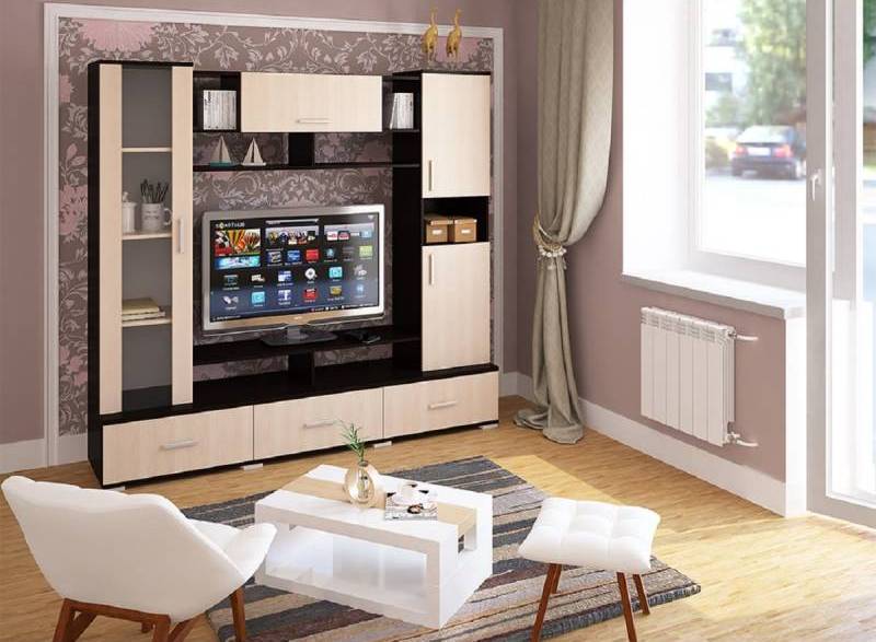 Современная модель с декорированным стеклом. Вместительные фасады. Ниша для ТВ.