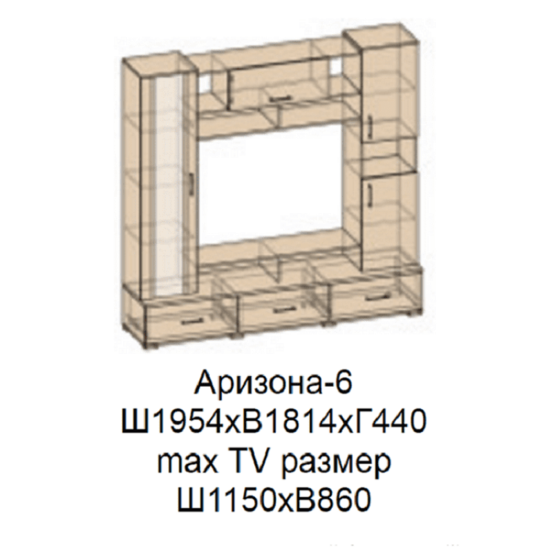 Максимальный размер под ТВ: 1150 х 860 (Ш х В).