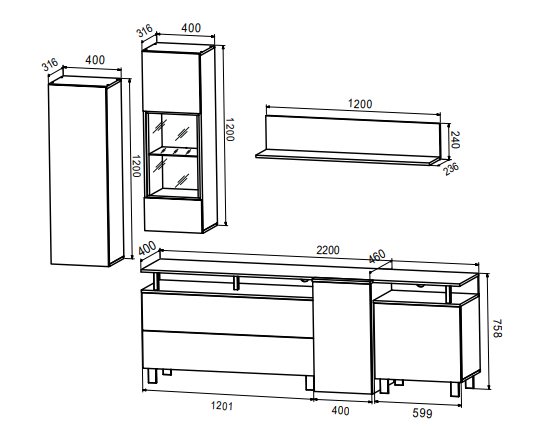 Тип: модульная стенка для гостиной.