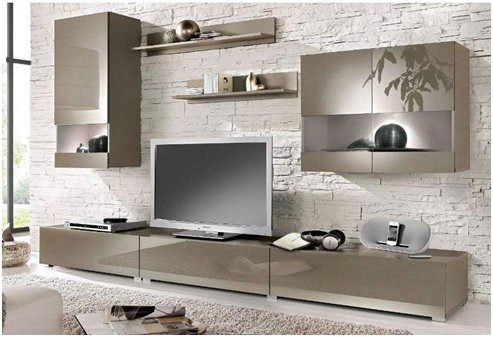 Современный дизайн с фрезеровкой. Створки открываются при помощи выступа фасада.