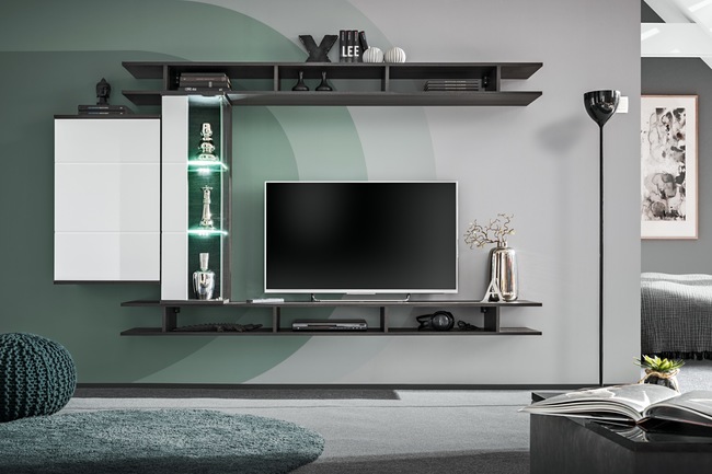 Гостиная (стенка, горка) GAME – комплект мебели Гейм с фасадами модных цветов для современной гостиной.