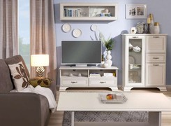 Коллекция мебели в стиле «легкого кантри» с белыми текстурными фасадами под дерево. Материал: МДФ покрытый плёнкой, ЛДСП.