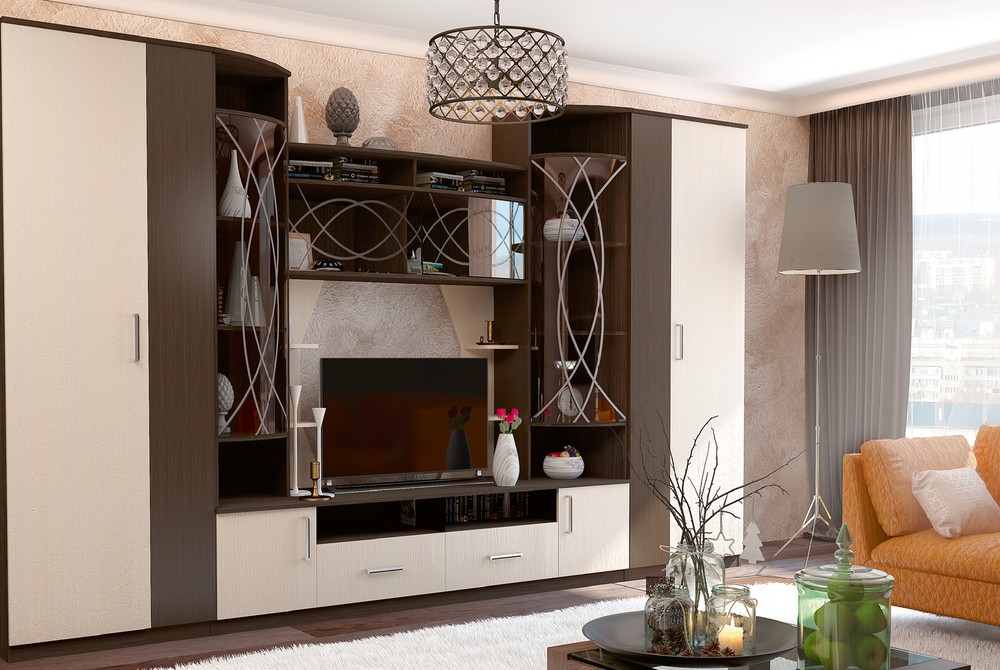Модульный набор мебели для гостиной. Материал: ЛДСП.