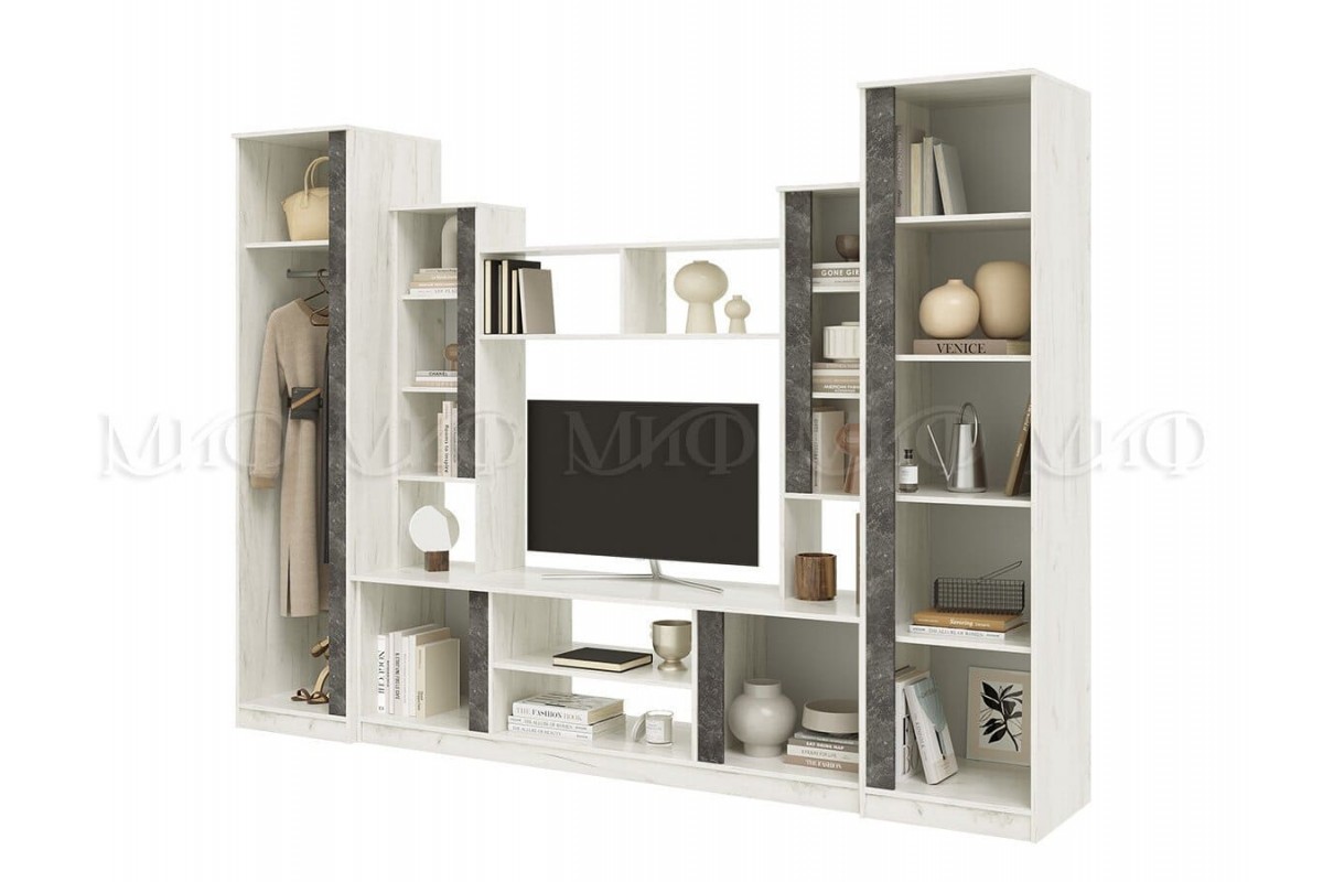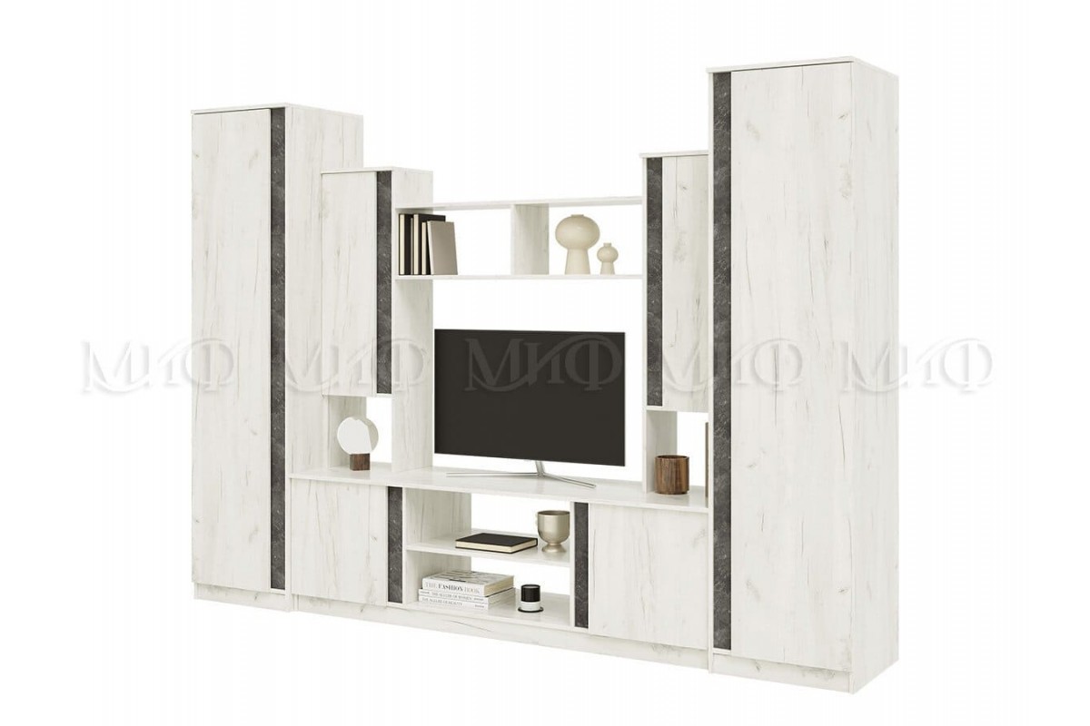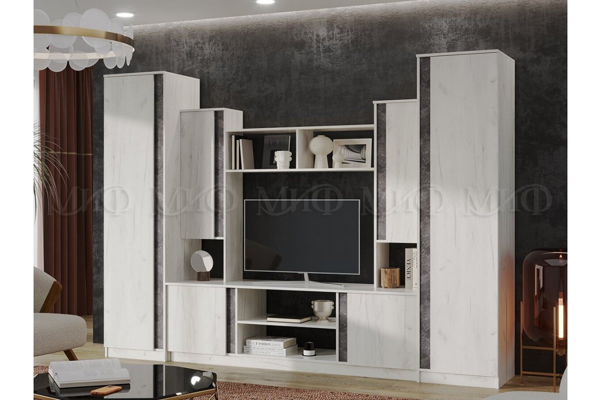 Гостиная «Атлантида-5» (дуб крафт белый - бетон темный)
