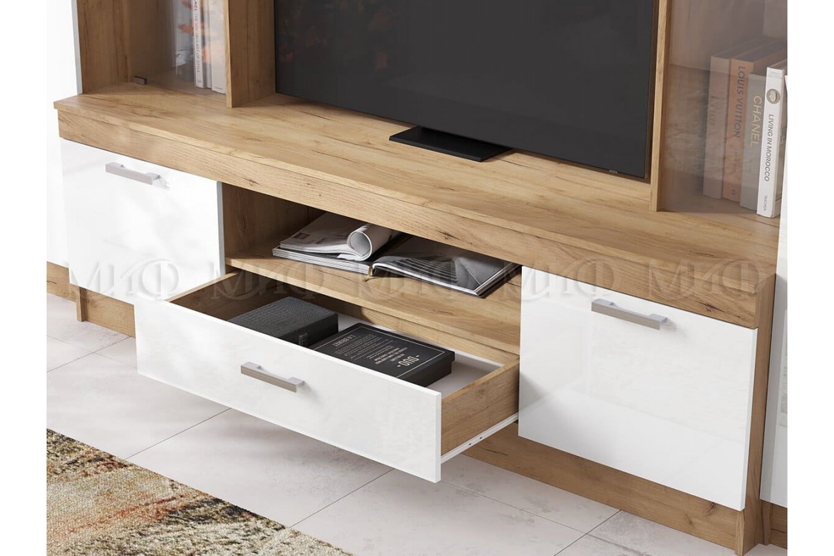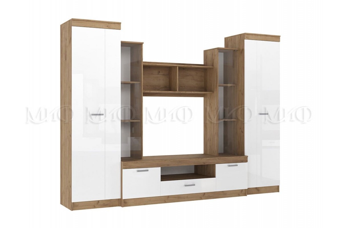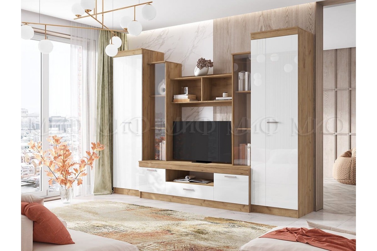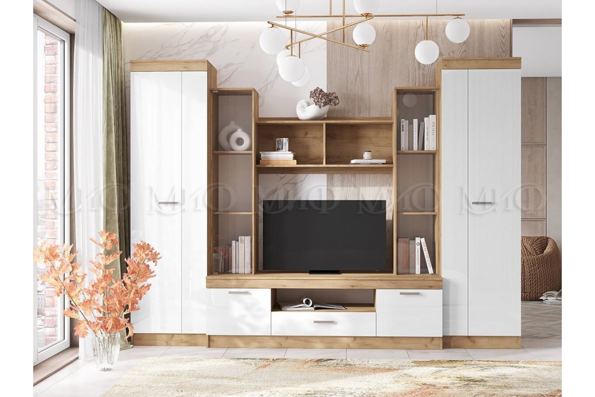 Гостиная «Атлантида-6» (дуб крафт золотой - белый глянец)
