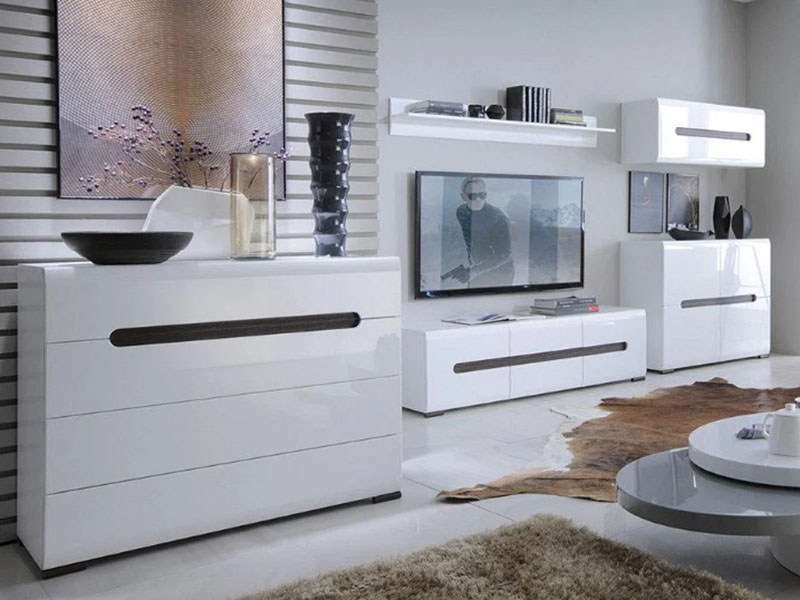 Гостиная «Лия-3» Комплект 1 - Белый /Белый глянец Рикко