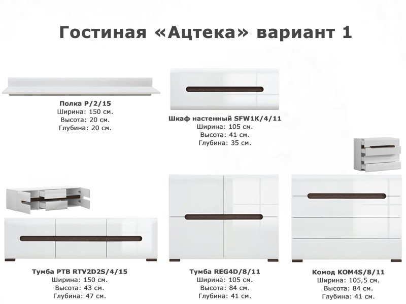 Модульная система «Ацтека» – простой способ обставить квартиру в едином стиле: в нее входят элементы для спальни, прихожей, детской, гостиной. Отличительные черты мебели – лаконичный современный дизайн, глянцевые фасады с контрастными вырезанными ручками, невысокие пластиковые ножки, качественная фурнитура с доводчиками.