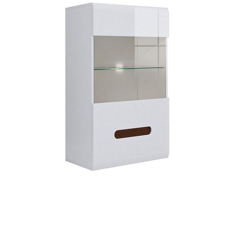 В состав комплекта входит: шкаф, шкаф с витриной, тумба, полка навесная.