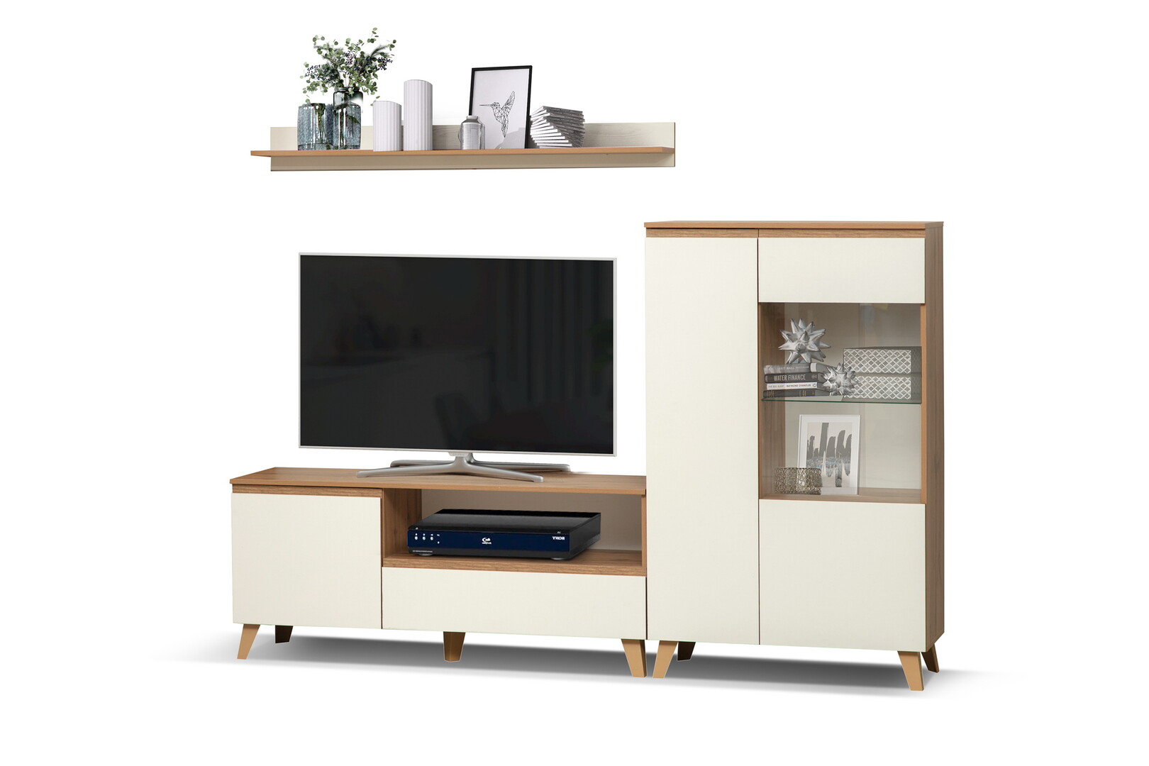 Набор мебели для гостиной Авалон в скандинавском стиле удачное решение для меблировки небольшого пространства ,благодаря высоким опорам и открытым отделениям набор смотрится легко и не перегружает интерьер.Корпус набора изготовлен из ЛДСП 16 мм. Свисс Крона цвет дуб вотан, фасады из ЛДСП 18 мм. Свисс Крона цвет белый с интегрированными ручками (J-ручка), направляющие шариковые,петли 4-х шарнирные без доводчиков