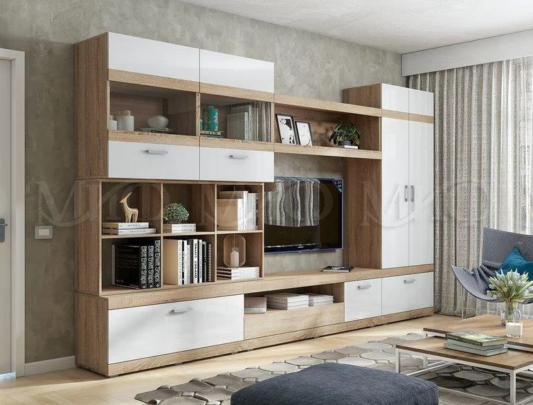 Гостиная «Аванта» Белый глянец / Дуб Сонома - вариант 4