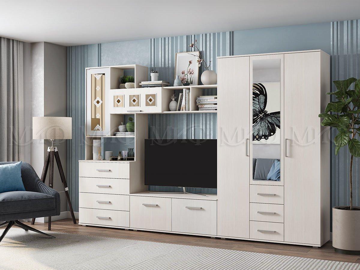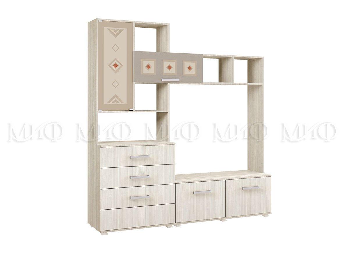 Современная стенка со светлыми фасадами. Стильный дизайн.