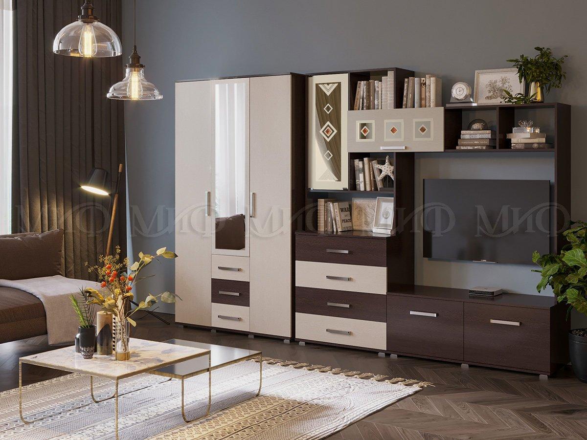 Модульная коллекция мебели в благородном древесном цвете для гостиной. Материал: ЛДСП, МДФ.