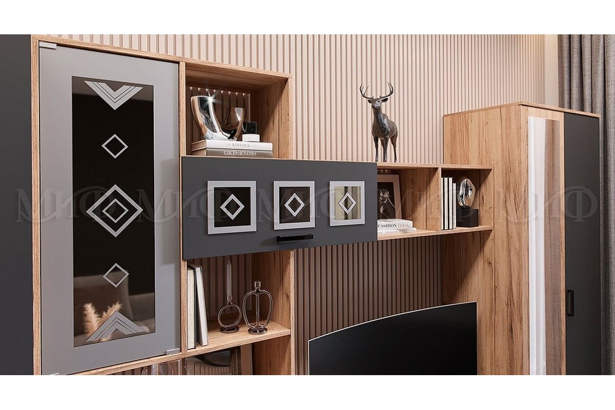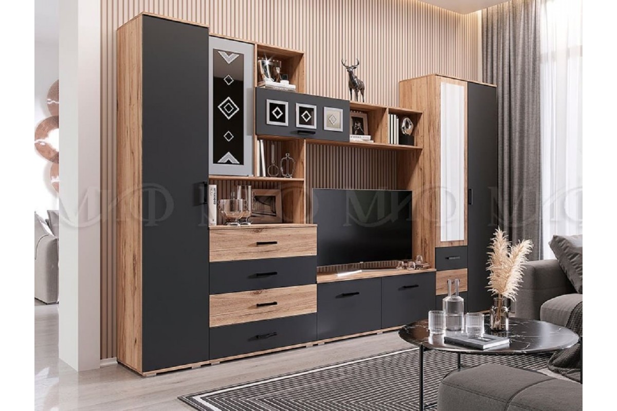Гостиная «Белла» (графит - дуб крафт золотой)
