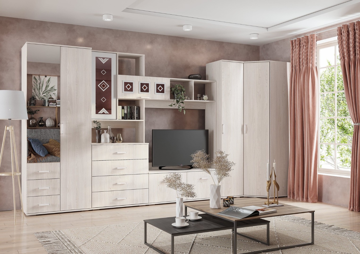 Гостиная «Белла» Комплект 2 - Ясень белый (BTS)