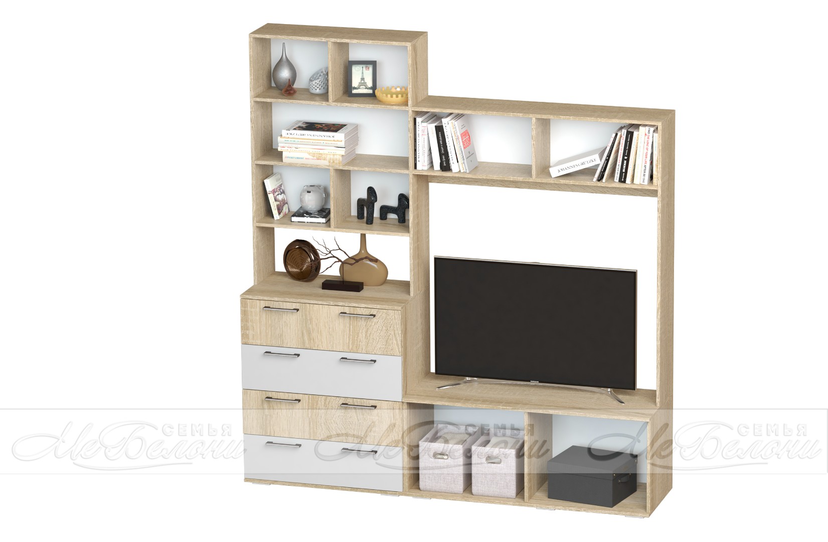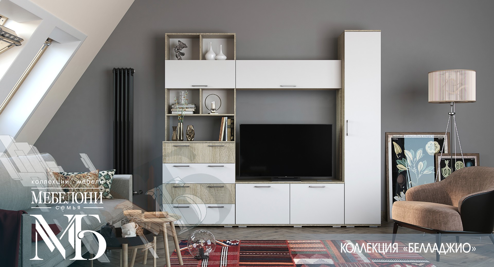 Гостиная «Белладжио» Комплект 1 - Белый глянец/Дуб сонома (BTS)