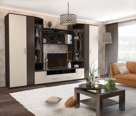 Гостиная со шкафом «Марсель» Венге - Белый глянец