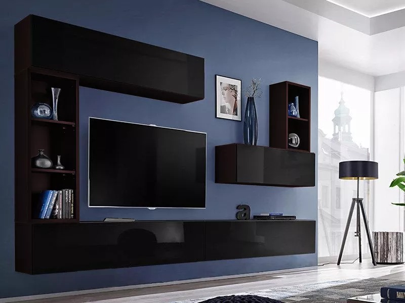 Гостиная «Блокс (Эвита)» Венге/Черный Лакобель