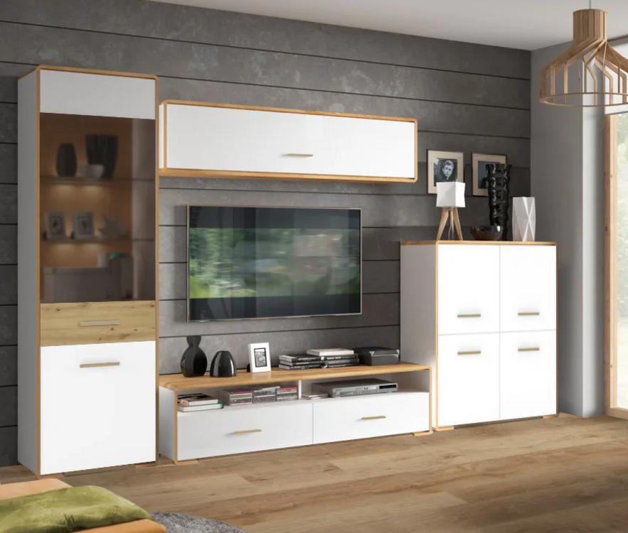 Гостиная «Белладжио» Комплект 1 - Белый глянец/Дуб сонома (BTS)