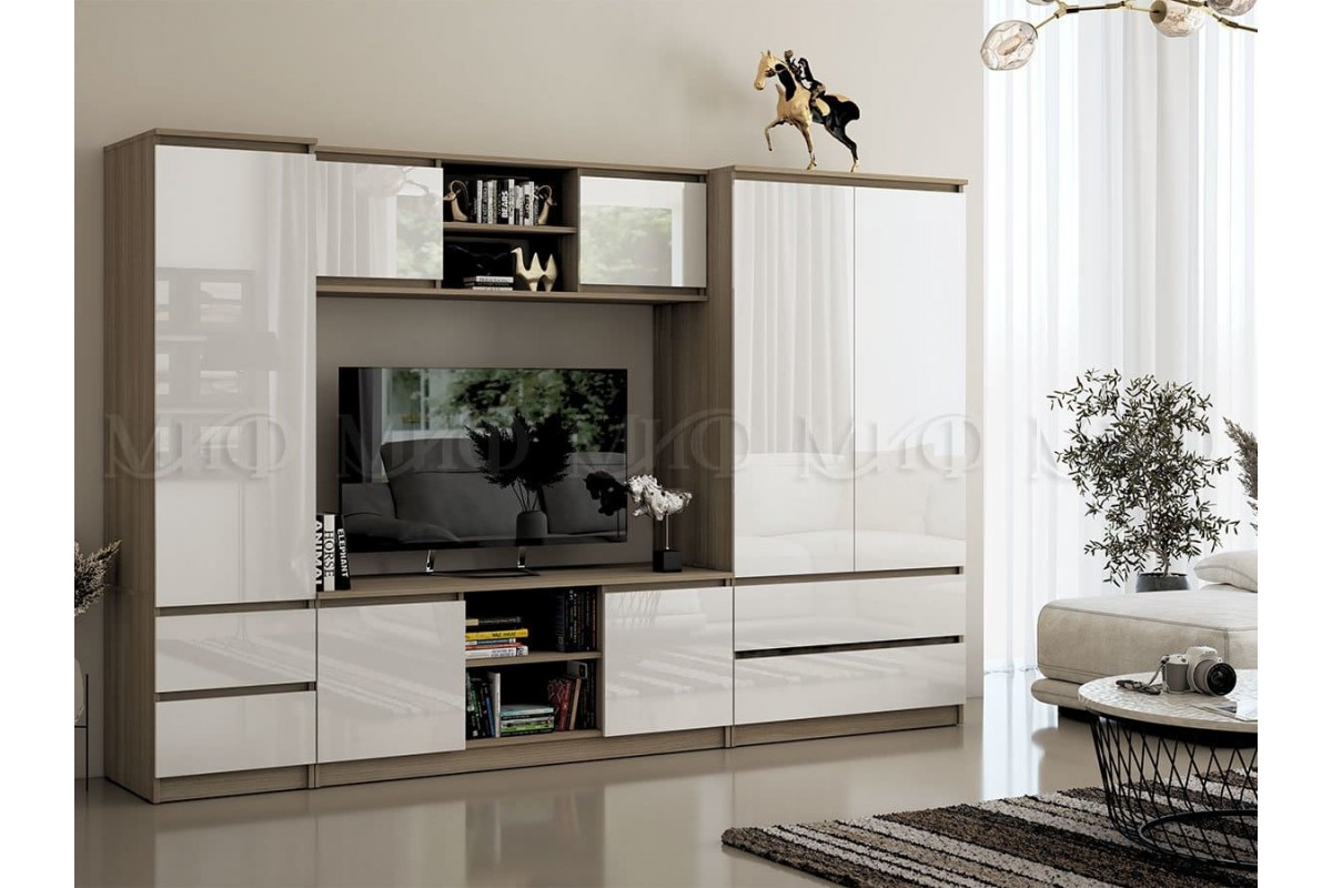 Гостиная «Альфа» Белый глянец/Венге (Горизонт)