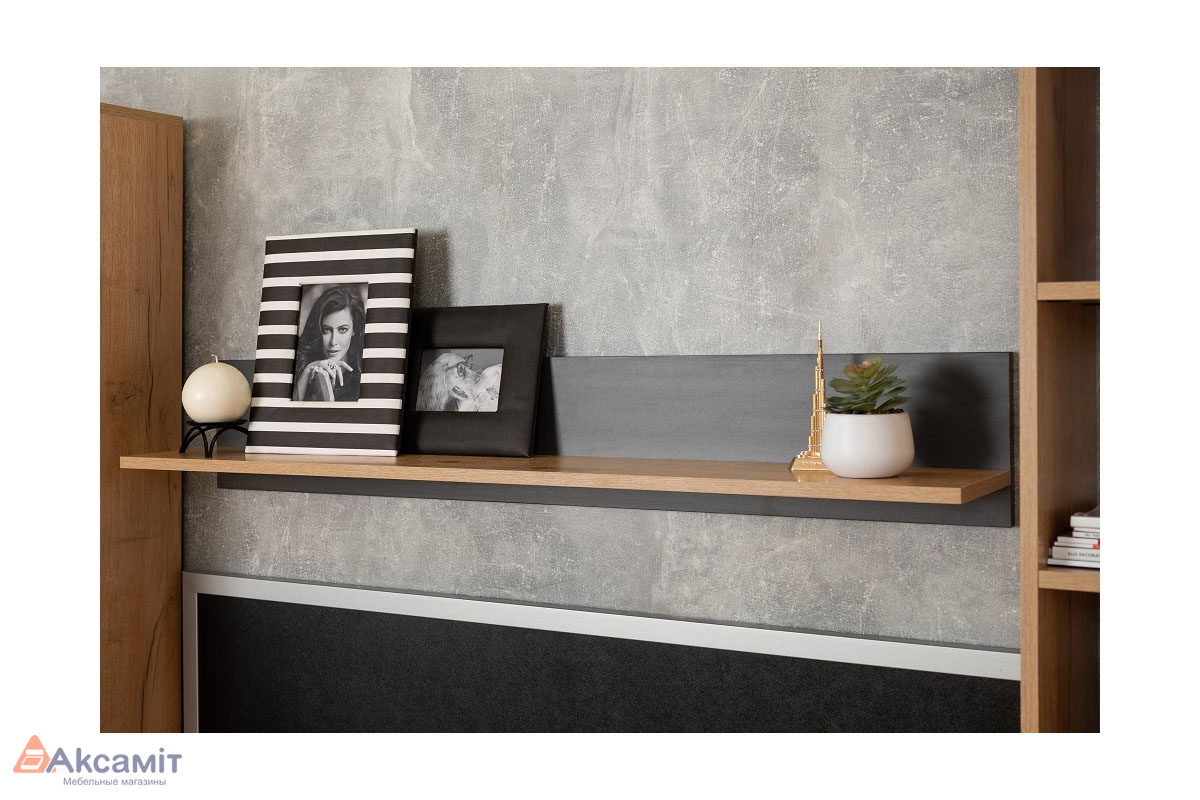 - Полка навесная Crown 18 (Дуб Золотистый/Графит). Габариты (ШхГхВ) в мм - 1204х214х198