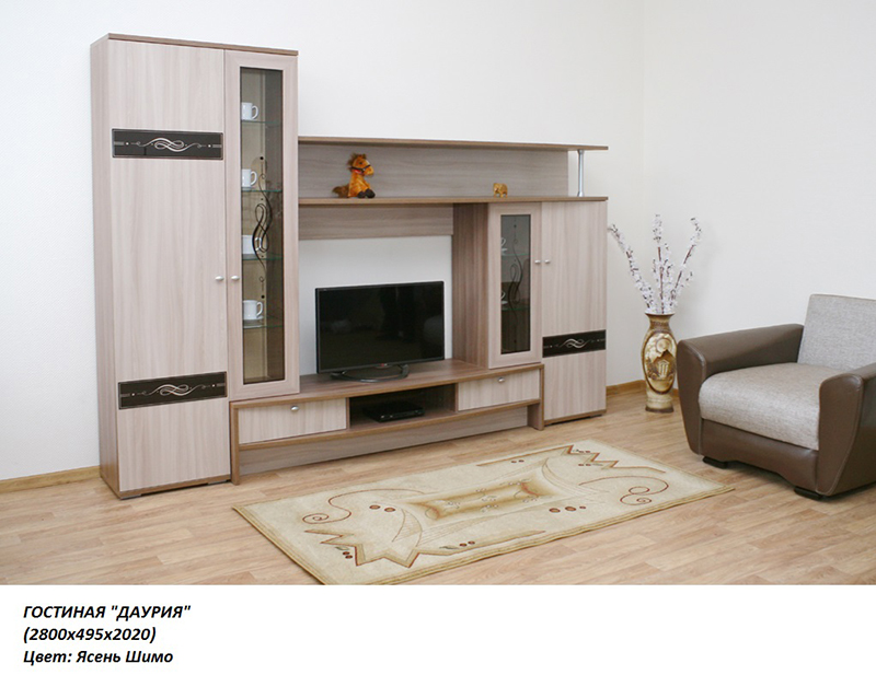 Стенка «Даурия» предназначена для создания уюта в гостиной комнате. Модель, выполненная в цвете венге и дуб молочный, которые прекрасно дополняют друг друга. Фасад декорирован стеклом с рисунком, нанесенным по современной технологии.