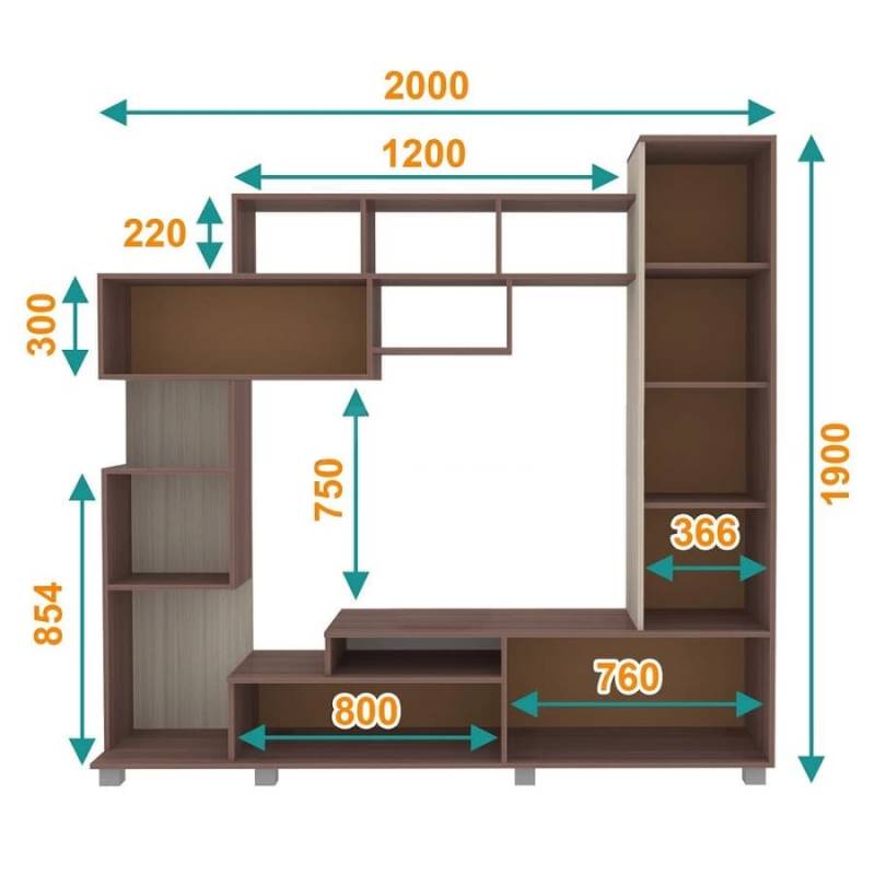 Гостиная «Диско №9» 2,0 м (шимо темный - шимо светлый)