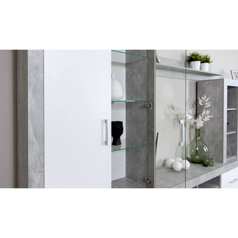 - Есть витрина со стеклом, которая позволяет красиво разместить декоративные элементы или книги.