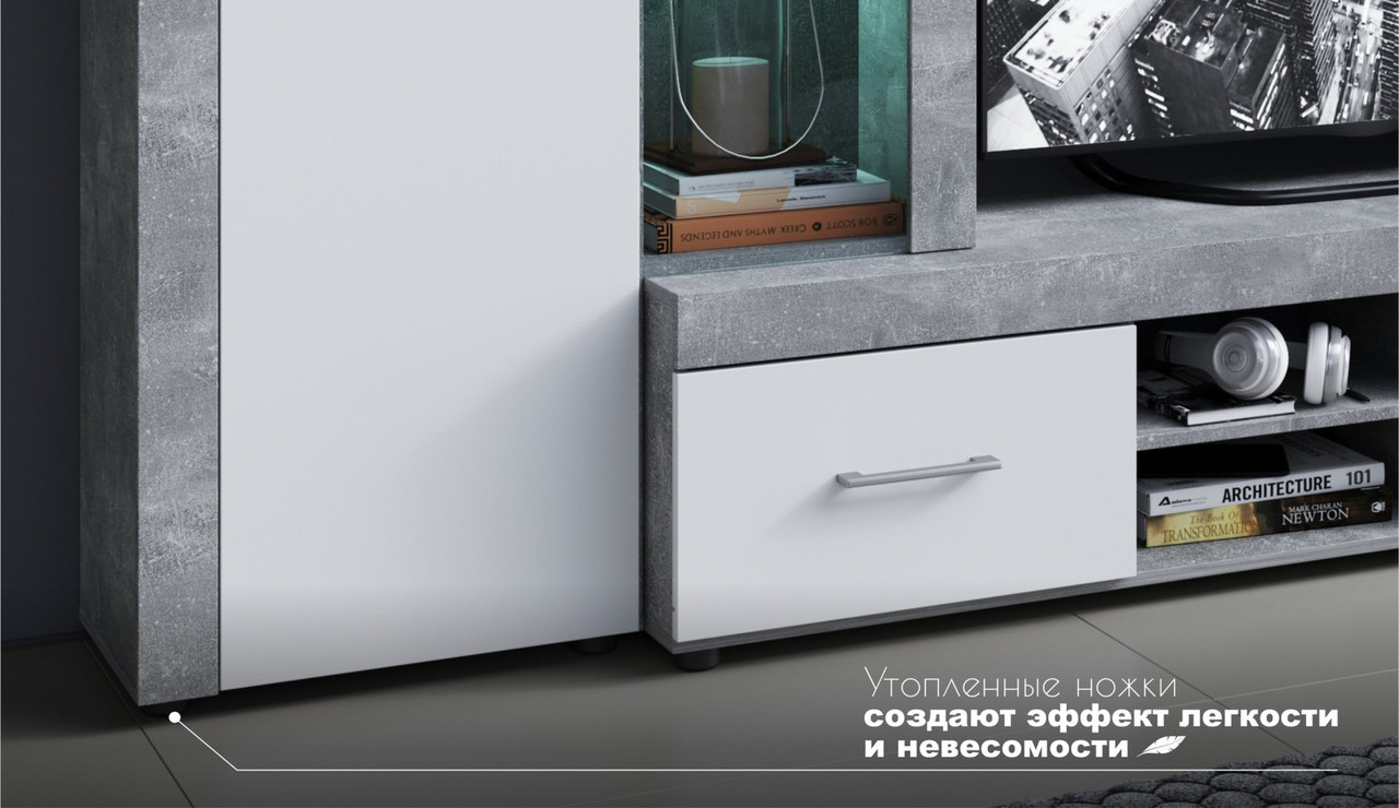 Гостиная «Quartz-1 (Кварц)» Дуб нокс с подсветкой ИнтерЛиния