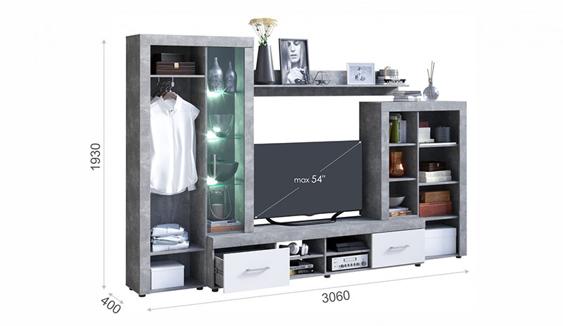 код 124214Стенка Джерси – светлая, компактная и функциональная. Размеры: 3060х400х1930 мм.